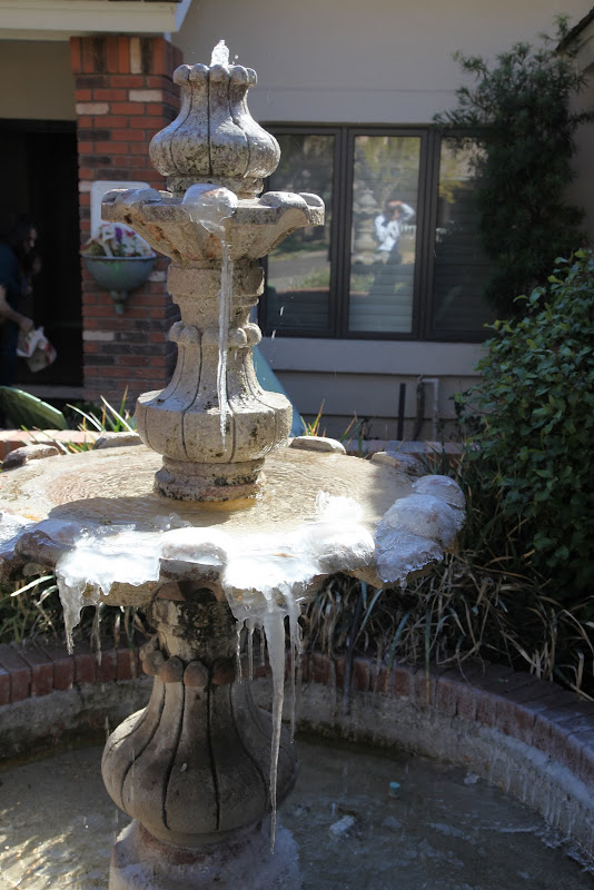 Your fountain looks super cool all frozen!! As long as it is going to be cold- we need ice/snow or something to show for it!